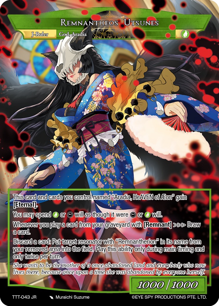 弃1张牌:将目标名字具有“残迹圣兽”的生物从你的移除区放进战场。此异能只能在主要时点施放且每回合只能施放至多2次。
