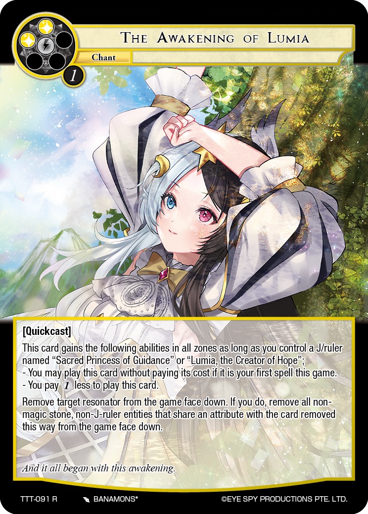 只要你操控1个名为“指引圣公主”的领主或1个名为“希望创生 露米娅”的裁决者,此牌在所有区域获得以下异能。